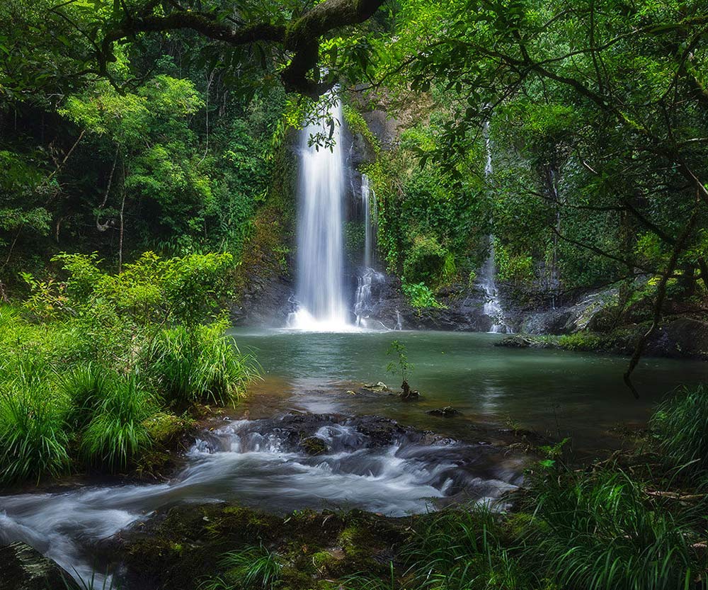 A private property nestled in a wonderous valley, deep in the Daintree awaits. A truly tropical paradise set amongst a vibrant and living landscape. Towering rainforest mountains slide down to pastured hills and plains. Amongst the green, the pristine Cassowary Falls tumbles over granite walls to a cool pool where you can relax and revive in one of nature’s amphitheatres. This is the heart of the Daintree.